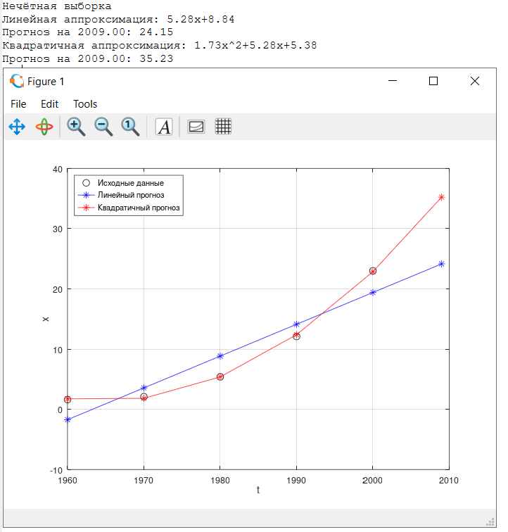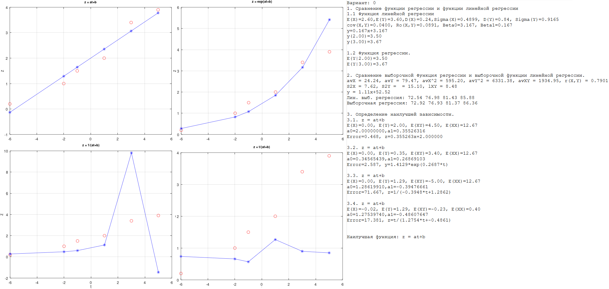 Лабораторная работа №1. Гистограммы. Доверительные интервалы 1. Методические указания: Lab1.pdf 2. Варианты заданий: Lab1Data.m 3. Пример вывода программы: ![]() Лабораторная работа №2. Регрессионный анализ 1. Методические указания: Lab2.pdf 2. Варианты заданий: task1 task2 task3 3. Пример вывода программы: ![]() Лабораторная работа №3. Анализ временных рядов Дедлайн сдачи: 9 апреля.1. Методические указания: Lab3.pdf 2. Варианты заданий: task3 3. Пример вывода программы: ![]() |